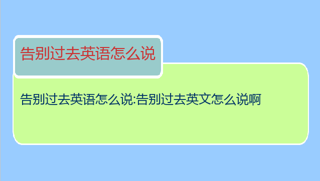 共找到3个和告别过去英语怎么说相关的问题和 6条解答,可以点击下面的问题,查看更多相关信息。