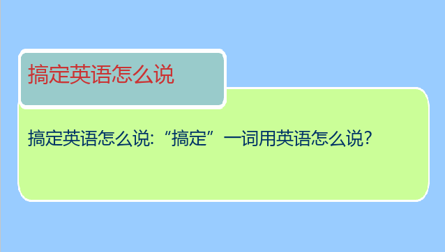 搞定英语怎么说:“搞定”一词用英语怎么说?