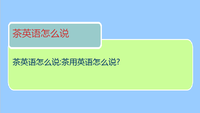 共找到3个和茶英语怎么说相关的问题和 5条解答,可以点击下面的问题,查看更多相关信息。