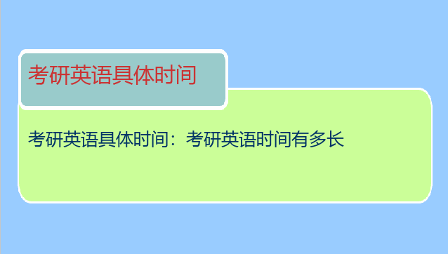 以上就是考研英语具体时间:考研英语时间有多长的全部内容了,下载历年考研英语真题、考研英语作文、学习考研词汇 欢迎访问:http://www.bdqnwj.com/