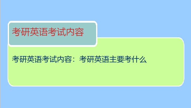 考研英语是针对那些报考非英语专业的考生所进行的英语水平测试,是教育部统一出题,主要考查大学英语的基本知识,包括完型、阅读、新题型、翻译、写作等五部分,卷面分值为100,与政治(分值为100)和其他两门专业课(分值分别为150分)共同构成了研究生入学考试的四大科目。