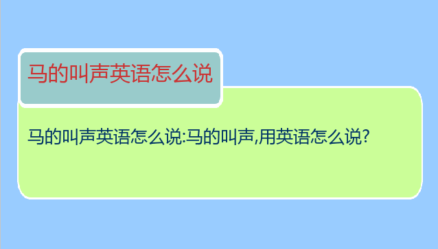 以上就是马的叫声英语怎么说:马的叫声,用英语怎么说?的全部内容了,下载历年考研英语真题、考研英语作文、学习考研词汇 欢迎访问:http://www.bdqnwj.com/