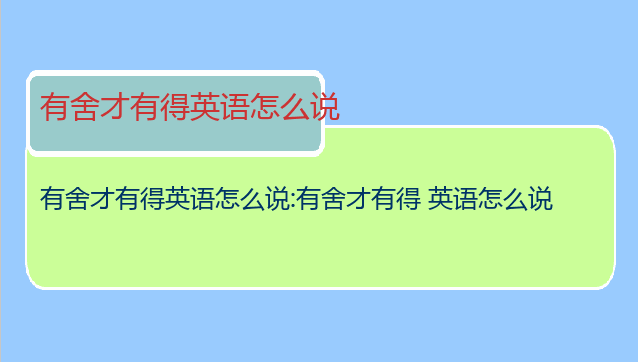有舍才有得英语怎么说:有舍才有得 英语怎么说