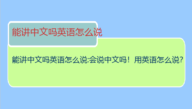 能讲中文吗英语怎么说:会说中文吗!用英语怎么说?