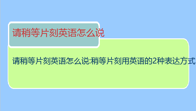 共找到3个和请稍等片刻英语怎么说相关的问题和 6条解答,可以点击下面的问题,查看更多相关信息。