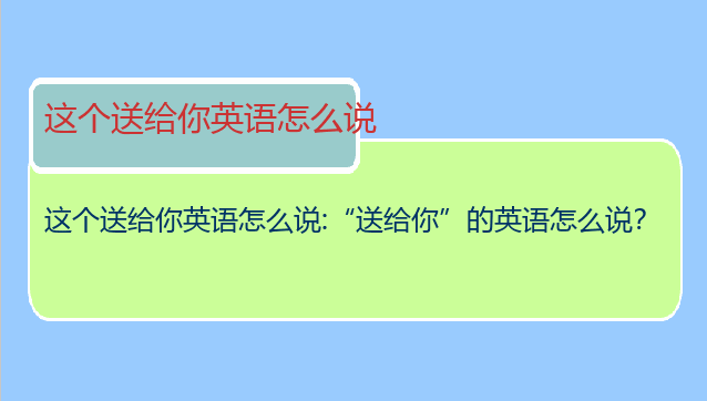 以上就是这个送给你英语怎么说:“送给你”的英语怎么说?的全部内容了,下载历年考研英语真题、考研英语作文、学习考研词汇 欢迎访问:http://www.bdqnwj.com/